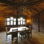 Die vollständig mit Holz ausgekleidete spätmittelalterliche Stube wurde 1509 vom Prior Hieronymus Zscheckenbürlin eingerichtet. Hieronymus war ein angesehener und reicher Basler Bürger bevor er 1487 in die Kartause eintrat. Seine Kontakte pflegte er weiter und begrüsste viele Gäste im Kloster. Das reich ausgestattete Zimmer diente als Gaststube. Es enthielt zwei Holzbetten. „Dieses Prunkzimmer ist mit vertäfelten Wänden und mit einem wunderbaren hölzernen Deckengewölbe versehen. Dieses trägt in der Mitte das Bild Christi und auf den 16 Knotenpunkten der Rippen in einem ersten Kreis die Bilder der vier Evangelisten und der vier grossen Kirchenlehrer, und in einem zweiten acht Engel mit den Marterwerkzeugen. Auf den Zentren der vier Wände unter den dort zusammenlaufenden Gewölberippen befinden sich die Wappen der Spender, der Familien Zscheckenbürlin, Fuchs, Brunn und Oberried.“ Im 19. Jh. wurden im Zimmer die Konfirmationen von Waisenkindern gefeiert.